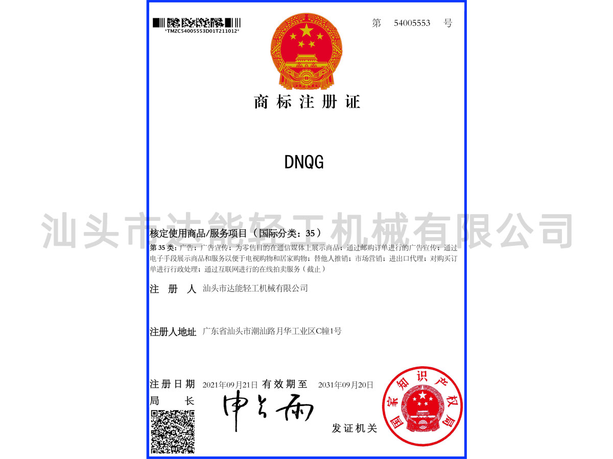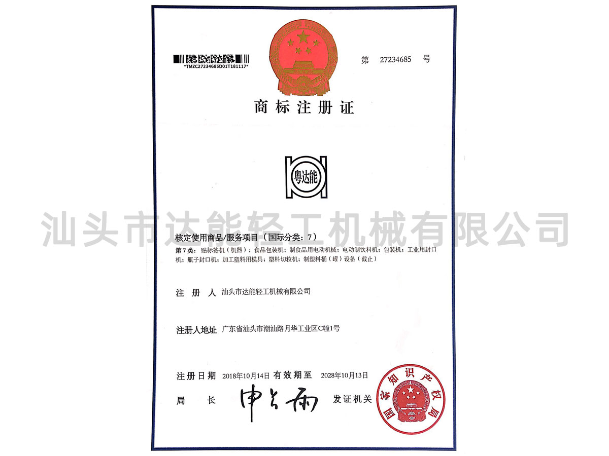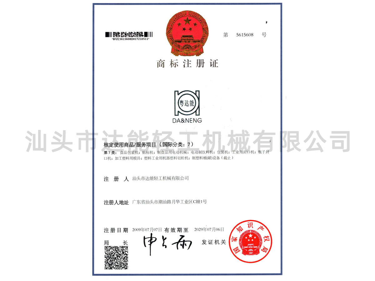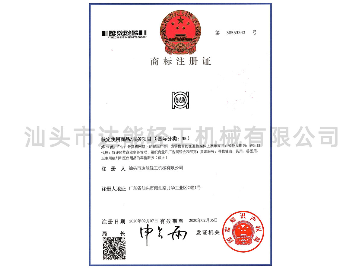 以上商標均是“汕頭市達能輕工機械有限公司 ”所有